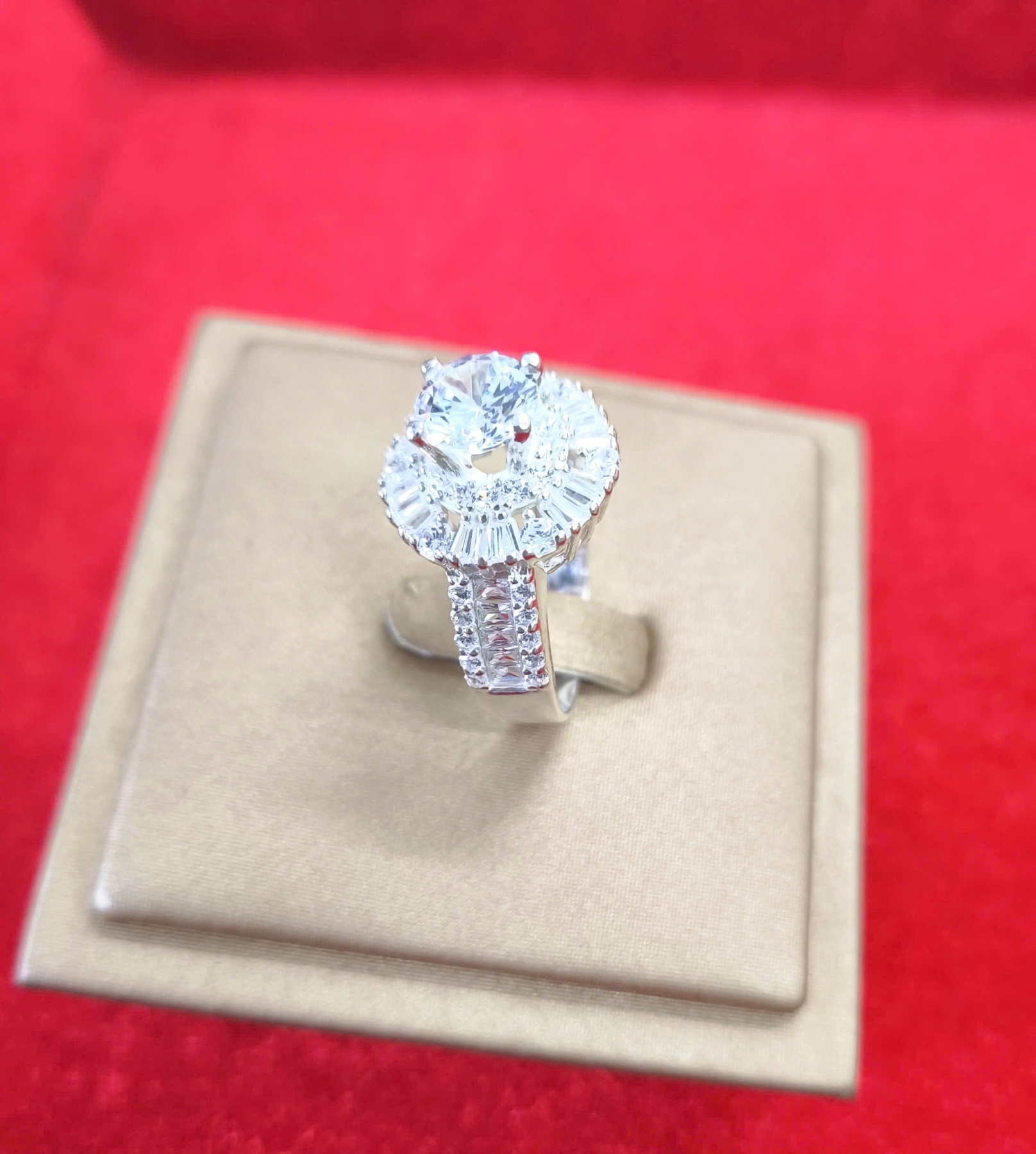 Nhẫn Kim Cương Halo Tròn Luxury – Đai Baguette Lấp Lánh