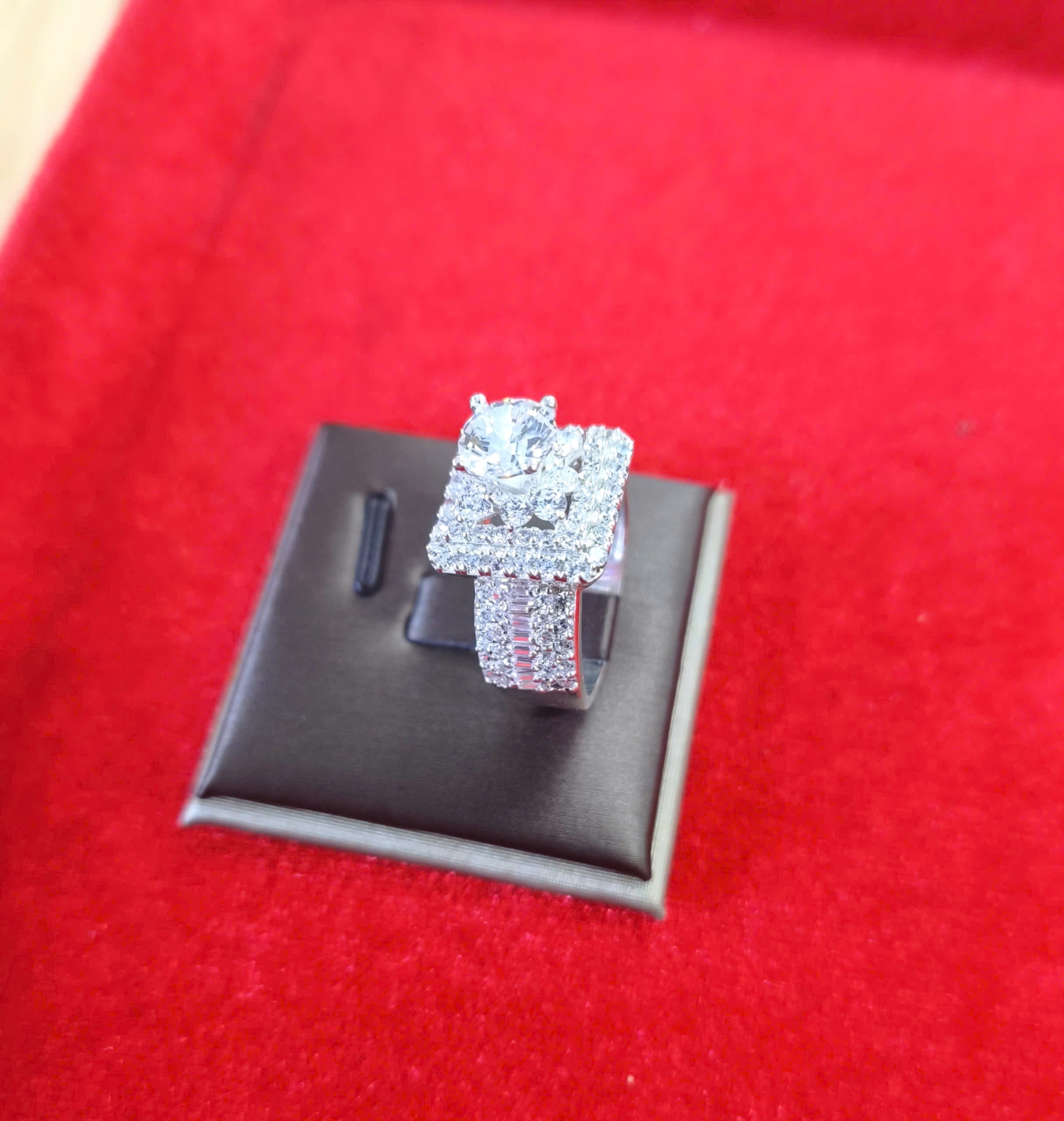 Nhẫn Kim Cương Halo Vuông Đa Tầng – Phong Cách Luxury Statement